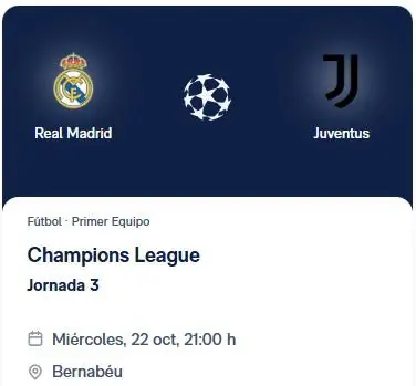Real Madrid -Juventus, miercoles 22 de octubre a las 21.00 h