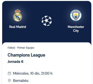 Real Madrid -Manchester City, miercoles 10 de Diciembre   a las 21.00 h