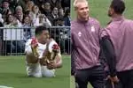 El inglés se llevó varias veces la mano a la zona lesionada nada más pisar el césped a su llegada el estadio y durante el calentamiento
